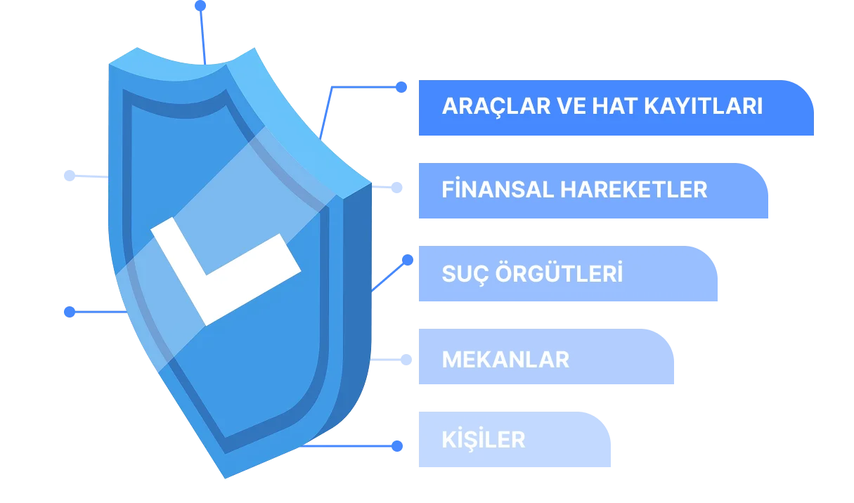 Kişiler, gruplar veya olaylar; çok boyutlu risk kriterlerine göre değerlendirilir. Yapay zekâ destekli skorlar üretilir.