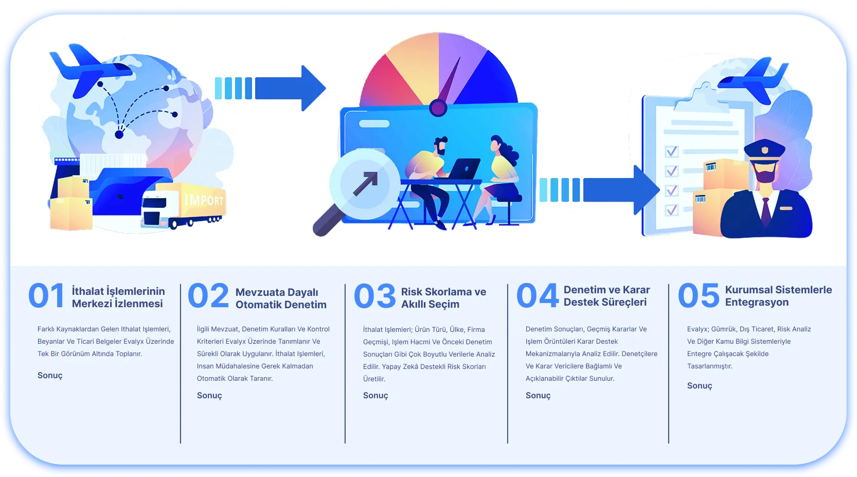 Özetle: Evalyx, ithalat denetimini “her şeyi kontrol etmeye çalışma” anlayışından çıkarır; doğru işlemi, doğru zamanda denetleme refleksi kazandırır.